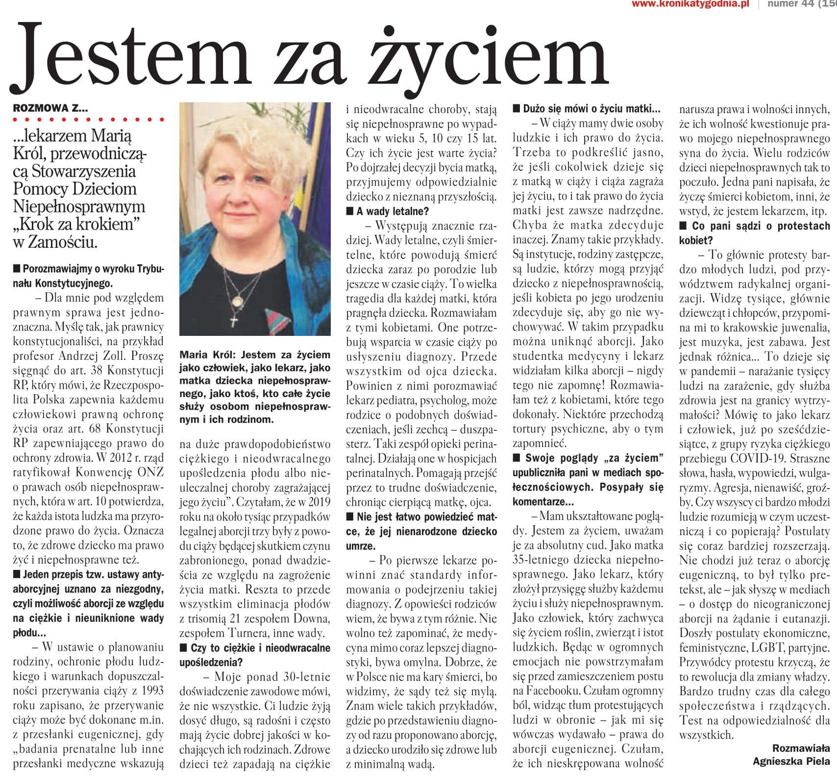 Rozmowa Przewodniczącej Marii Król z Redaktor Agnieszką Piela z Kroniki Tygodnia