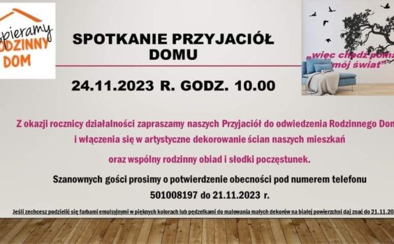 Zapraszamy na jubileusz 1 rocznicy powstania Rodzinnego Domu.